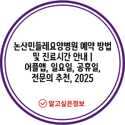 논산민들레요양병원 예약 방법 및 진료시간 안내 | 어플앱, 일요일, 공휴일, 전문의 추천, 2025