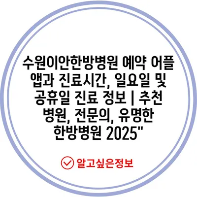 수원이안한방병원 예약 어플 앱과 진료시간, 일요일 및 공휴일 진료 정보 | 추천 병원, 전문의, 유명한 한방병원 2025″