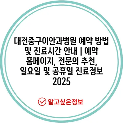 대전중구이안과병원 예약 방법 및 진료시간 안내 | 예약 홈페이지, 전문의 추천, 일요일 및 공휴일 진료정보 2025