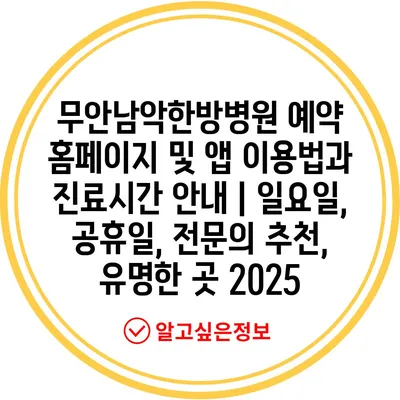 무안남악한방병원 예약 홈페이지 및 앱 이용법과 진료시간 안내 | 일요일, 공휴일, 전문의 추천, 유명한 곳 2025