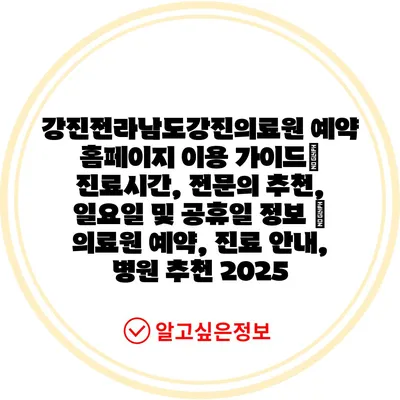 강진전라남도강진의료원 예약 홈페이지 이용 가이드| 진료시간, 전문의 추천, 일요일 및 공휴일 정보 | 의료원 예약, 진료 안내, 병원 추천 2025