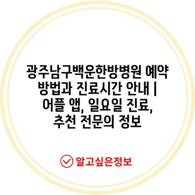광주남구백운한방병원 예약 방법과 진료시간 안내 | 어플 앱, 일요일 진료, 추천 전문의 정보