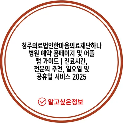 청주의료법인한마음의료재단하나병원 예약 홈페이지 및 어플 앱 가이드 | 진료시간, 전문의 추천, 일요일 및 공휴일 서비스 2025