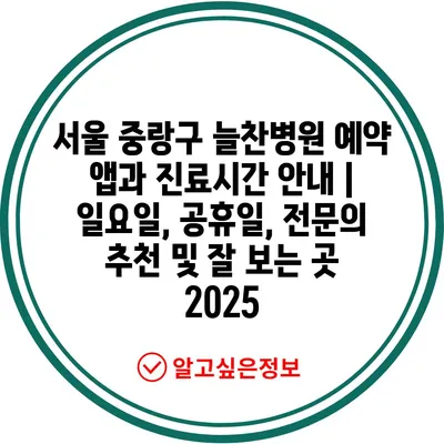 서울 중랑구 늘찬병원 예약 앱과 진료시간 안내 | 일요일, 공휴일, 전문의 추천 및 잘 보는 곳 2025