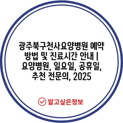 광주북구천사요양병원 예약 방법 및 진료시간 안내 | 요양병원, 일요일, 공휴일, 추천 전문의, 2025