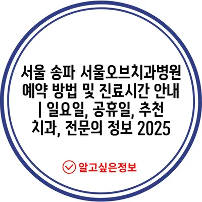 서울 송파 서울오브치과병원 예약 방법 및 진료시간 안내 | 일요일, 공휴일, 추천 치과, 전문의 정보 2025
