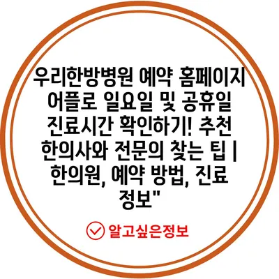우리한방병원 예약 홈페이지 어플로 일요일 및 공휴일 진료시간 확인하기! 추천 한의사와 전문의 찾는 팁 | 한의원, 예약 방법, 진료 정보”