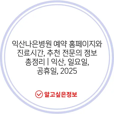 익산나은병원 예약 홈페이지와 진료시간, 추천 전문의 정보 총정리 | 익산, 일요일, 공휴일, 2025
