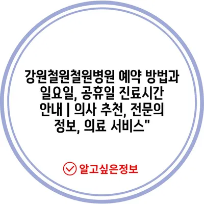 강원철원철원병원 예약 방법과 일요일, 공휴일 진료시간 안내 | 의사 추천, 전문의 정보, 의료 서비스”