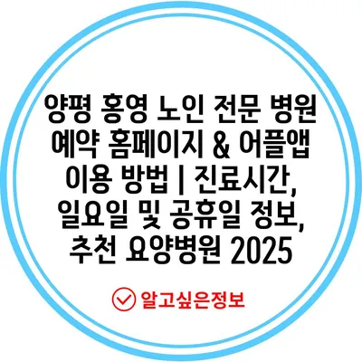 양평 홍영 노인 전문 병원 예약 홈페이지 & 어플앱 이용 방법 | 진료시간, 일요일 및 공휴일 정보, 추천 요양병원 2025