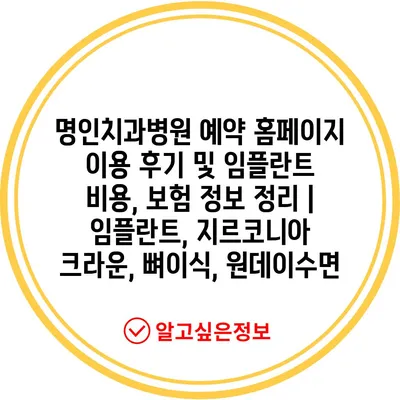 명인치과병원 예약 홈페이지 이용 후기 및 임플란트 비용, 보험 정보 정리 | 임플란트, 지르코니아 크라운, 뼈이식, 원데이수면
