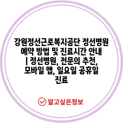 강원정선근로복지공단 정선병원 예약 방법 및 진료시간 안내 | 정선병원, 전문의 추천, 모바일 앱, 일요일 공휴일 진료