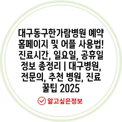 대구동구한가람병원 예약 홈페이지 및 어플 사용법! 진료시간, 일요일, 공휴일 정보 총정리 | 대구병원, 전문의, 추천 병원, 진료 꿀팁 2025