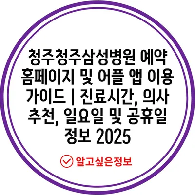 청주청주삼성병원 예약 홈페이지 및 어플 앱 이용 가이드 | 진료시간, 의사 추천, 일요일 및 공휴일 정보 2025
