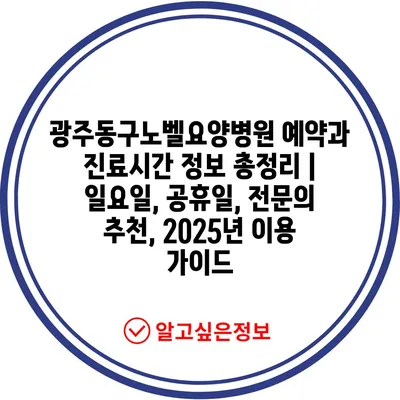 광주동구노벨요양병원 예약과 진료시간 정보 총정리 | 일요일, 공휴일, 전문의 추천, 2025년 이용 가이드