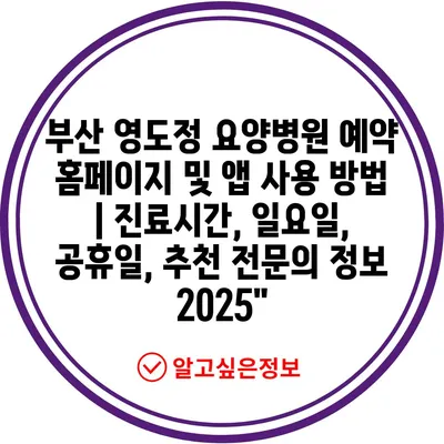 부산 영도정 요양병원 예약 홈페이지 및 앱 사용 방법 | 진료시간, 일요일, 공휴일, 추천 전문의 정보 2025″