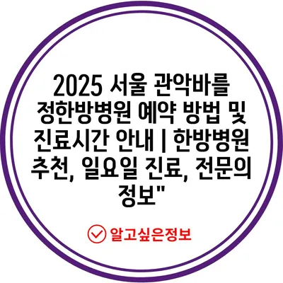 2025 서울 관악바를 정한방병원 예약 방법 및 진료시간 안내 | 한방병원 추천, 일요일 진료, 전문의 정보”