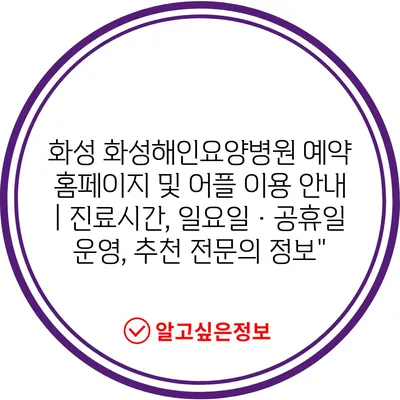 화성 화성해인요양병원 예약 홈페이지 및 어플 이용 안내 | 진료시간, 일요일·공휴일 운영, 추천 전문의 정보”