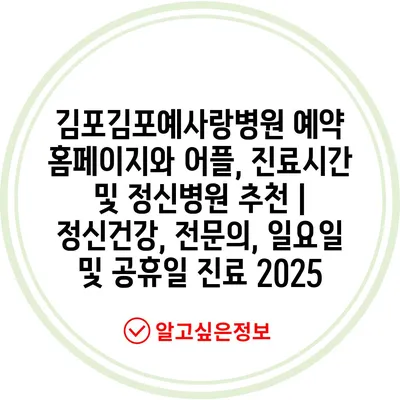 김포김포예사랑병원 예약 홈페이지와 어플, 진료시간 및 정신병원 추천 | 정신건강, 전문의, 일요일 및 공휴일 진료 2025