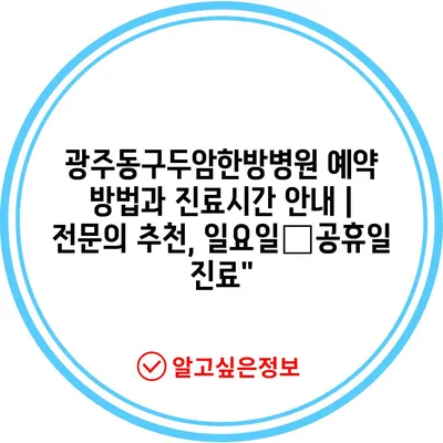 광주동구두암한방병원 예약 방법과 진료시간 안내 | 전문의 추천, 일요일・공휴일 진료”