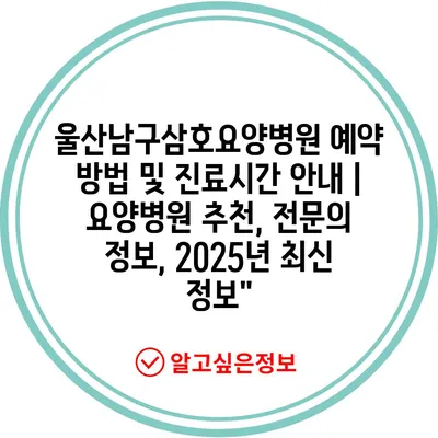 울산남구삼호요양병원 예약 방법 및 진료시간 안내 | 요양병원 추천, 전문의 정보, 2025년 최신 정보”