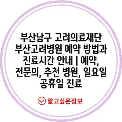 부산남구 고려의료재단 부산고려병원 예약 방법과 진료시간 안내 | 예약, 전문의, 추천 병원, 일요일 공휴일 진료
