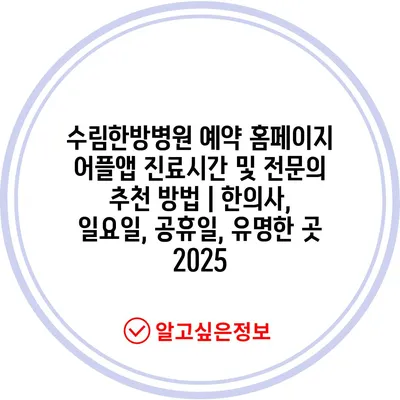수림한방병원 예약 홈페이지 어플앱 진료시간 및 전문의 추천 방법 | 한의사, 일요일, 공휴일, 유명한 곳 2025