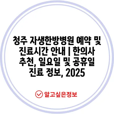 청주 자생한방병원 예약 및 진료시간 안내 | 한의사 추천, 일요일 및 공휴일 진료 정보, 2025
