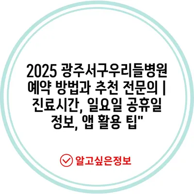 2025 광주서구우리들병원 예약 방법과 추천 전문의 | 진료시간, 일요일 공휴일 정보, 앱 활용 팁”