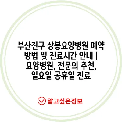 부산진구 상봉요양병원 예약 방법 및 진료시간 안내 | 요양병원, 전문의 추천, 일요일 공휴일 진료