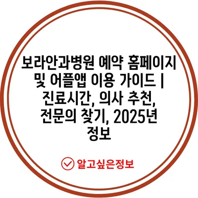 보라안과병원 예약 홈페이지 및 어플앱 이용 가이드 | 진료시간, 의사 추천, 전문의 찾기, 2025년 정보