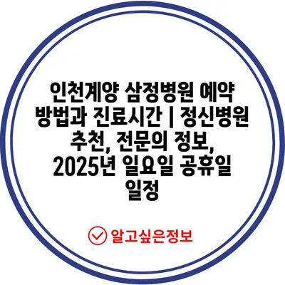인천계양 삼정병원 예약 방법과 진료시간 | 정신병원 추천, 전문의 정보, 2025년 일요일 공휴일 일정