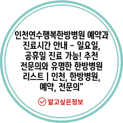 인천연수행복한방병원 예약과 진료시간 안내 – 일요일, 공휴일 진료 가능! 추천 전문의와 유명한 한방병원 리스트 | 인천, 한방병원, 예약, 전문의”