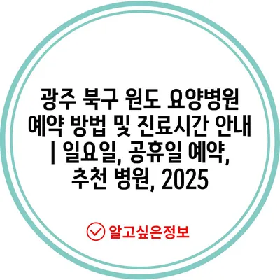 광주 북구 원도 요양병원 예약 방법 및 진료시간 안내 | 일요일, 공휴일 예약, 추천 병원, 2025