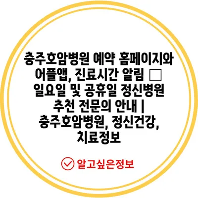 충주호암병원 예약 홈페이지와 어플앱, 진료시간 알림 – 일요일 및 공휴일 정신병원 추천 전문의 안내 | 충주호암병원, 정신건강, 치료정보