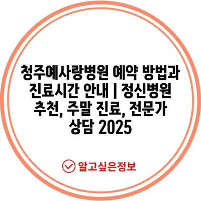 청주예사랑병원 예약 방법과 진료시간 안내 | 정신병원 추천, 주말 진료, 전문가 상담 2025