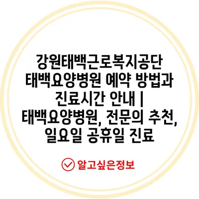 강원태백근로복지공단 태백요양병원 예약 방법과 진료시간 안내 | 태백요양병원, 전문의 추천, 일요일 공휴일 진료