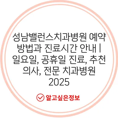 성남밸런스치과병원 예약 방법과 진료시간 안내 | 일요일, 공휴일 진료, 추천 의사, 전문 치과병원 2025