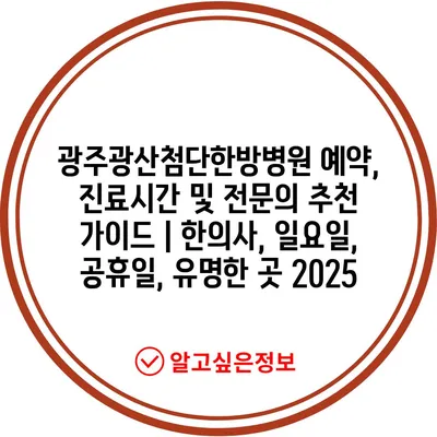광주광산첨단한방병원 예약, 진료시간 및 전문의 추천 가이드 | 한의사, 일요일, 공휴일, 유명한 곳 2025
