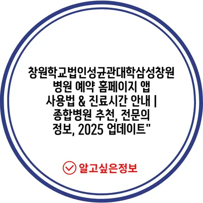 창원학교법인성균관대학삼성창원병원 예약 홈페이지 앱 사용법 & 진료시간 안내 | 종합병원 추천, 전문의 정보, 2025 업데이트”