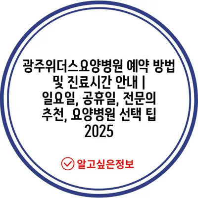 광주위더스요양병원 예약 방법 및 진료시간 안내 | 일요일, 공휴일, 전문의 추천, 요양병원 선택 팁 2025