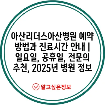 아산리더스아산병원 예약 방법과 진료시간 안내 | 일요일, 공휴일, 전문의 추천, 2025년 병원 정보