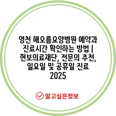 영천 해오름요양병원 예약과 진료시간 확인하는 방법 | 현보의료재단, 전문의 추천, 일요일 및 공휴일 진료 2025