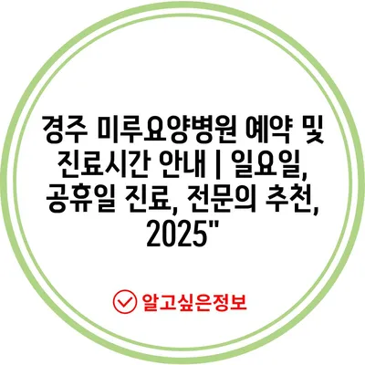 경주 미루요양병원 예약 및 진료시간 안내 | 일요일, 공휴일 진료, 전문의 추천, 2025″