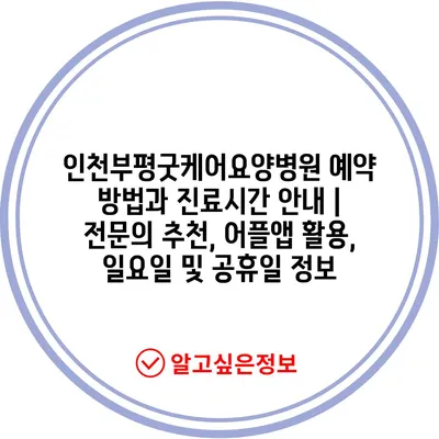 인천부평굿케어요양병원 예약 방법과 진료시간 안내 | 전문의 추천, 어플앱 활용, 일요일 및 공휴일 정보