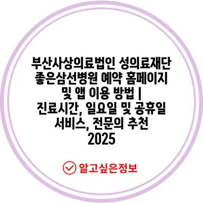 부산사상의료법인 성의료재단 좋은삼선병원 예약 홈페이지 및 앱 이용 방법 | 진료시간, 일요일 및 공휴일 서비스, 전문의 추천 2025