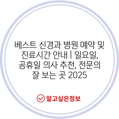 베스트 신경과 병원 예약 및 진료시간 안내 | 일요일, 공휴일 의사 추천, 전문의 잘 보는 곳 2025