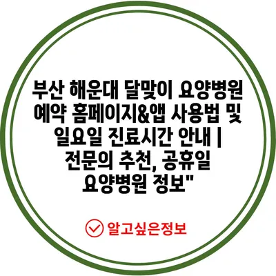 부산 해운대 달맞이 요양병원 예약 홈페이지&앱 사용법 및 일요일 진료시간 안내 | 전문의 추천, 공휴일 요양병원 정보”