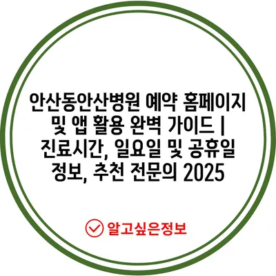 안산동안산병원 예약 홈페이지 및 앱 활용 완벽 가이드 | 진료시간, 일요일 및 공휴일 정보, 추천 전문의 2025