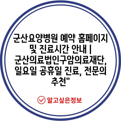 군산요양병원 예약 홈페이지 및 진료시간 안내 | 군산의료법인구암의료재단, 일요일 공휴일 진료, 전문의 추천”